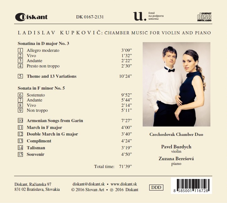 CD "Ladislav Kupkovič - Chamber Music for Violin and Piano" z verejných zdrojov podporil Fond na podporu umenia.